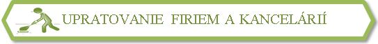Zabezpečujeme komplexné upratovacie služby pre firmy, podniky, kancelárie, obchodne priestory a iné. Upratovanie zabezpečíme jednorazové alebo pravidelne 7 dní v týždni a to počas, pred alebo po pracovnej dobe.